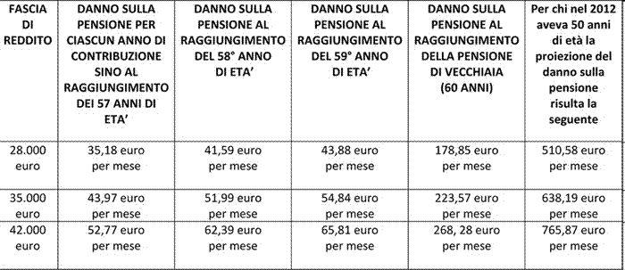 In soldoni vi sarà una perdita sulla pensione per ciascun anno lavorato dal 2012 in poi di circa 25-40 euro netti medi al mese.